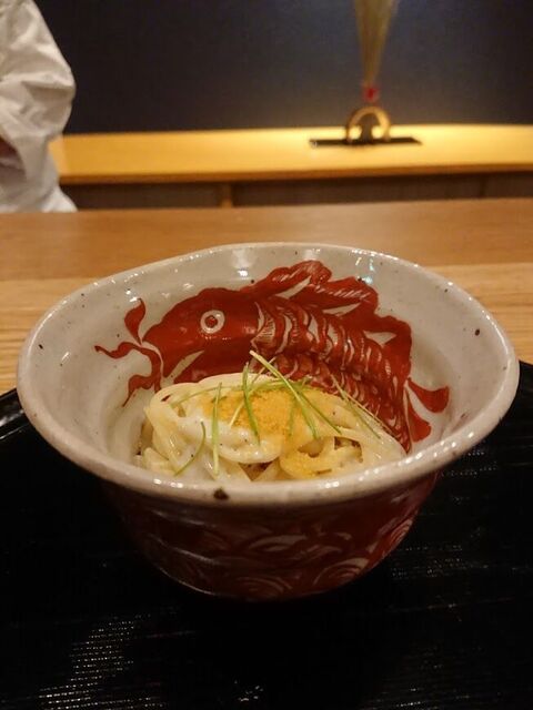 再びみたび神戸づいておりますが、神戸に行ってまいりました(^-^ゞ10月末にリニューアルオープンされていた神戸元町が最寄り駅の「御料理うみ」さん。イタリアンと和の融合がパワーアップされたとか!なにやら美味しそうな響き~お店の雰囲気はまさに割烹!品のいい落ち着き。高級なお寿司屋さんのようでもあり、寛げるムードです。私はなんだか武士の居所と感じてしまいました。傍らに日本刀のように包丁を置いておられたので!料理人にとって包丁は武士の刀みたいなものかな、って。それはさておき、いただいたのは12000円のコースです。まずはうみの宝石箱~わ~美しい!まさに宝石箱!中も綺麗。一番下に生うにパンナコッタ。パンナコッタってお菓子でしか聞いたことない!すっごいなめらかで臭みのないミルキーさ。上に蒸しアワビ&いくら。いくらもウニもお口の中でトロっとして全然磯臭くない!アワビ柔か~お次は前菜盛り合わせ~内容~丹波黒豆エスプレッソ煮銀杏の自家製塩山椒ジェノベーゼ牡蠣のトマト山椒煮紅はるかのきんとんでんすけアナゴの炙り自家製生カラスミ羊羮まぐろと紅ズワイがにレモンの香り生麩シェフの創意工夫&チャレンジ精神が凄いなって思います。なんといってもびっくりしたのが黒豆のエスプレッソ煮!お正月のおなじみ、黒豆が!甘くておいしくてそのままエスプレッソも味わえる。汁全部飲んでしまいました。毎日焼いておられるという自家製パンにつけて食べても美味しいです。通販でも買えちゃう。→https://umikobe.com/銀杏には自家製山椒が添えられています。銀杏でっかいなぁ。塩気とオリーブオイルの味かな?山椒辛すぎなくていい感じ。相生の牡蠣~イタリアンみたいなトマトソースみたいな!これが和とイタリアンの融合なのね。右側が伝助アナゴ。乗ってるカラスミも自家製。アナゴ香ばしくて皮の弾力が凄い。これもとっても美味しい!生麩は裏にアンチョビとチーズなど塗ってあって凝ってます。左側が羊羹まぐろ。まぐろが本当に羊羹っぽい歯応えなことにびっくり。もっちりとういろうのような・・・しっかり味が染みてて美味しい。普通にまぐろと思って口に入れたらびっくりしますよ。カニももちろん美味しい。きんとんは甘さ控えめでただ甘いんじゃなくてそんなに主張しないけど香辛料のような味がほんのりしている気がしました。隠し味がありそう・・・そしてこれもびっくり!バルサミコのサバ寿司しょうがのピクルスお酢の代わりにバルサミコなんですね~しょうがハーブみたいな匂いがしました。オリーブオイルが効いててやっぱり和のようでイタリアンなんだなぁと。サバが分厚くて香ばしさがあり食べ応えある。お米が一粒一粒しっかり独立して味わえる。トマトの茶碗蒸し仕立てトマトたっぷり茶碗蒸しにはでっかい車エビが入ってる!トマトに熱を加えると美味しいから出汁も出て美味しいんだろうなぁ。茶碗蒸しにトマトって荒業に思えたけど融合してるなぁ。トロットロ。美味しい。さわらの炭火焼きピスタチオソースさわら炭火焼きにピスタチオペーストソースがかかってて、ガーリックとピスタチオの煎ったのが乗せられてて、めちゃ香ばしいいい香り!ソースが猛烈に美味しくて、瓶詰めでほしいくらい。アワビとかのキモを食べているような旨味のある濃厚さ。ソース残すのもったいないから自家製パンで余すところなく食べました!自家製パンパンは自家製毎日焼いてはるそうです。自家製のものが多くて、超お忙しそうです。パンは冷めててもフワフワ~!小麦のいい匂いがして、フォカッチャの柔らかい版みたいな感じ。パンも通販してはります。箸休めのどら焼きも毎日焼いてはるそうです。間にフォアグラが挟まってます。フォアグラはキャラメリーゼされていてお菓子みたい。生地も甘いのです。カステラの下のザラメみたいなザリザリ感がした。季節で変わるジャムが添えられていて、この日はデザートワインで煮たリンゴ。ジャムは酸味が強めでした。フォアグラの脂をさっぱりさせてくれるかも!それとまろやか塩。パスタ~たら白子のすりながしパスタ~自家製カラスミの乗ったパスタ。鱈の白子のパスタ!台湾の幻の香辛料、マーガオが使われているんですって。優しい海の匂いがするパスタです。和牛炭火焼き本わさびとオイル香草塩黒毛和牛炭火焼きに添えられているのは塩、おろしわさび、ローズマリーなど香草のペーストですって。お肉柔らかい!小細工なし、素材そのままで美味しいって感じです。〆の土鍋ごはん時間をかけて蒸らして、目の前で混ぜてくれます。立ち上る湯気と香りがたまらんです。だいたいはレモンが使われていて、たまにスダチになったりするそうな。スダチ版も食べてみたいな。最初にご飯を炒めて炊いておられるそうです。ピラフっぽいのかな。セコガニとレモンの乗ったご飯にオリーブオイルをかけて蒸らして食べます。レモンは国産で皮のまま食べてもオッケー!という安心感!ご飯にレモンが合