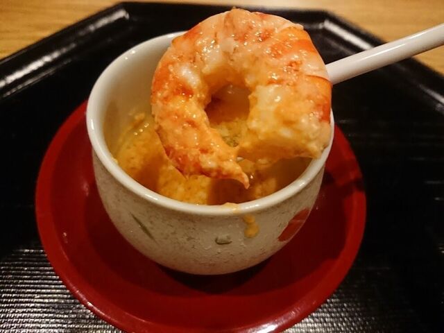 トマトたっぷり茶碗蒸しにはでっかい車エビが入ってる!