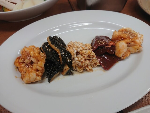 メニューはこんな感じなのですが、キムチだけでもナムルだけでも品数豊富でしょ。