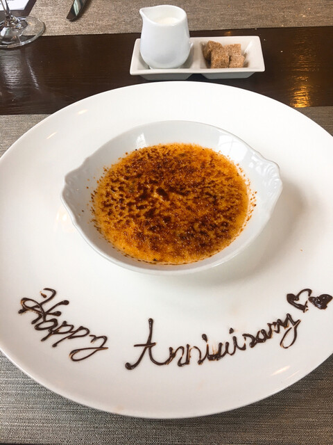 デザートはいくつかから選べます。わたしはラムレーズン味のブリュレに。