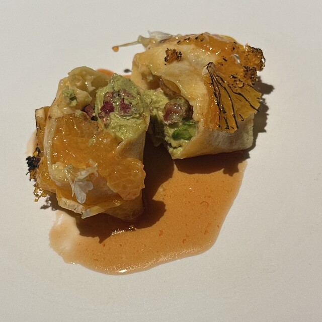 クレープシュゼット 柑橘とアボカド キャラメルソース