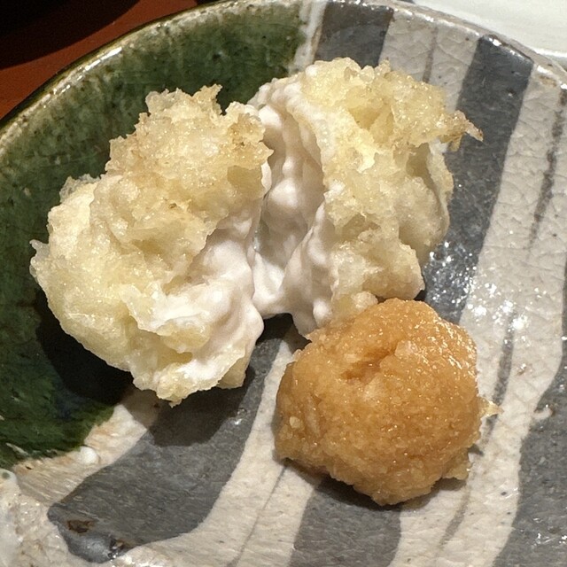 馬糞うに〜海苔や大葉なしで瑞々しい状態のまま丸ごと衣が包み込む。