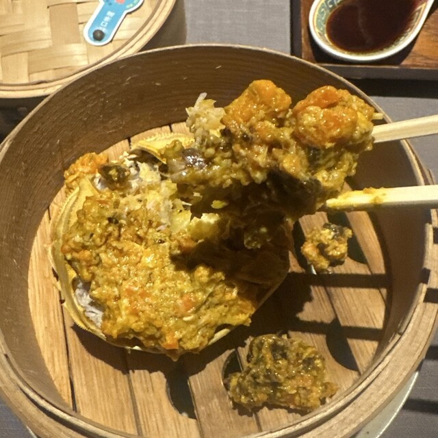 混ざり合う蒸した上海蟹や春巻き、そして