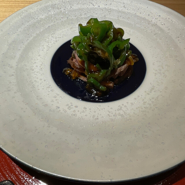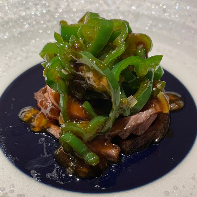 ◯高級肉らしい強い脂と油分を和らげるピーマンが混ざり合う青椒肉絲、、