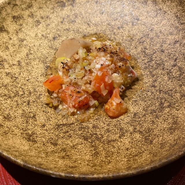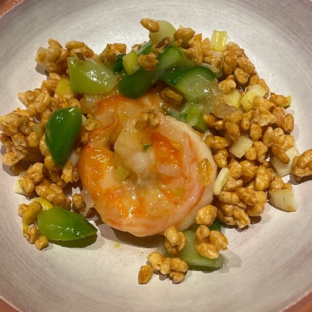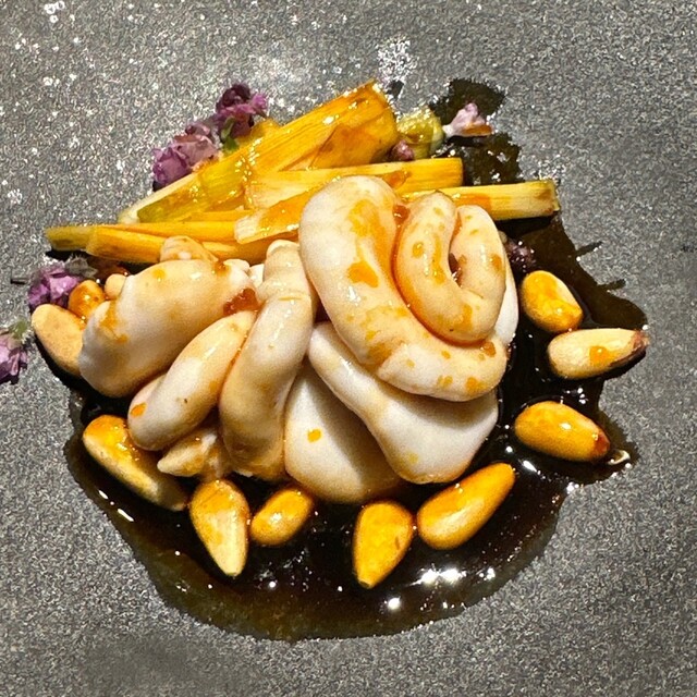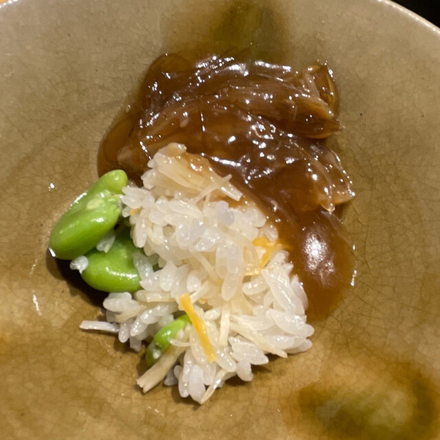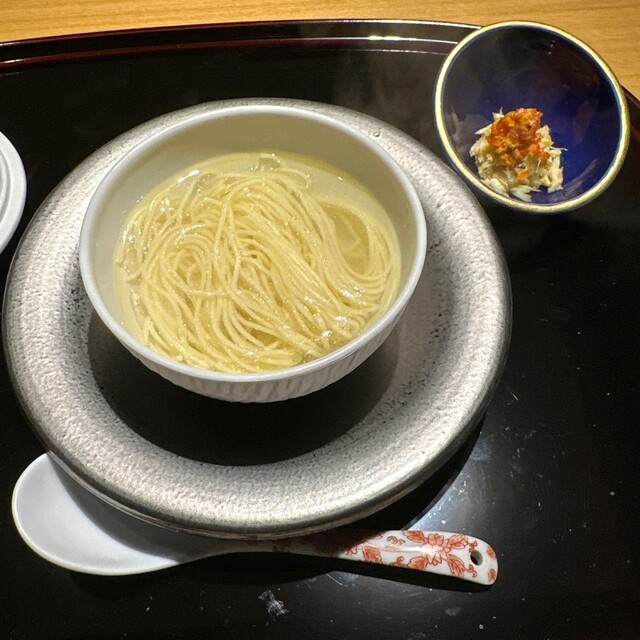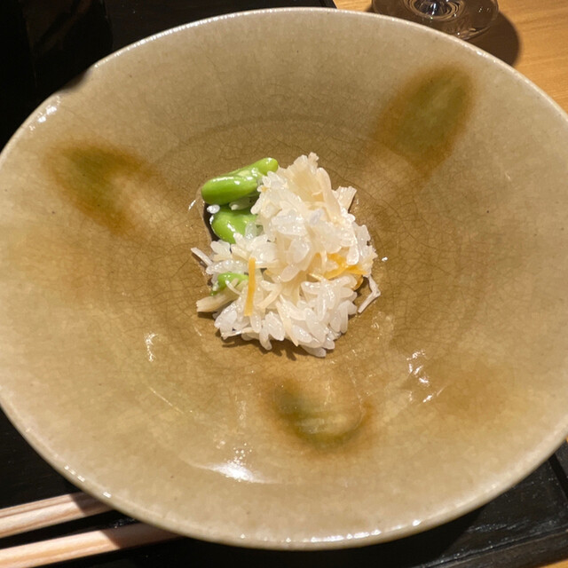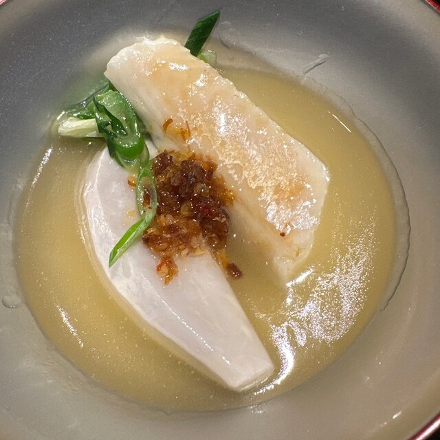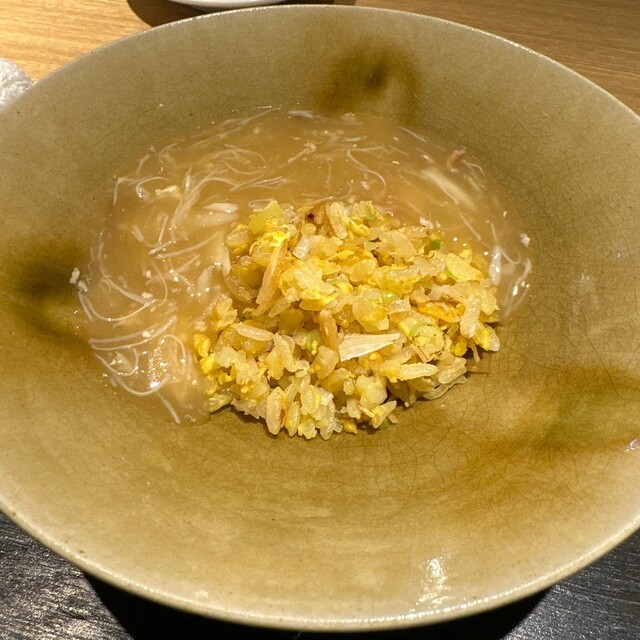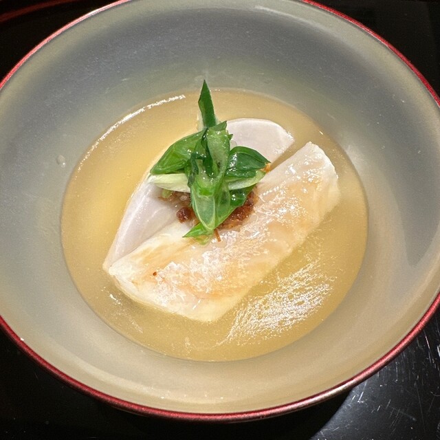 塚原 白子 筍 上湯スープ 白海老の素揚げ 木の芽 XO醤