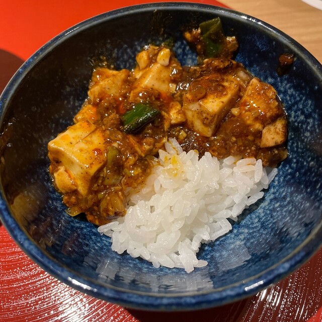 ◯そして本日初登場の四川麻婆豆腐〜毛穴が開く麻辣テイストの強い四川麻婆豆腐を更に引き立てる山形のつや姫、、