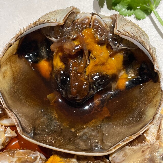紹興酒が染み渡る上海蟹〜雄は甘くねっとりした白子が雌は内子と味噌がたっぷり詰まる…