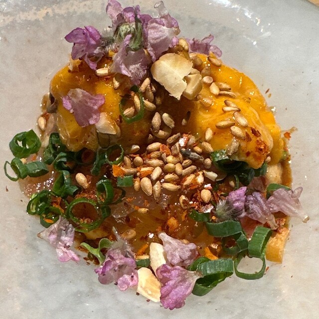 ピータンと麻辣豆腐ソースにキャビアのせ