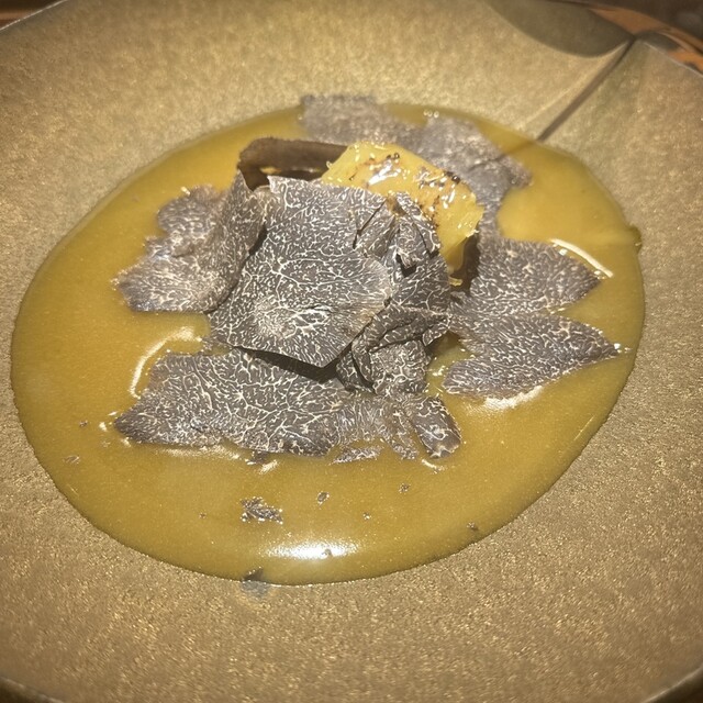 一番お目当てとする黒トリュフを沢山塗したフカヒレから隼の料理がスタートを切る❗️