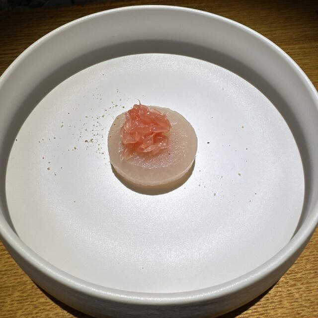 カラスミと肝~茨城大洗の黒アワビ 自家製カラスミと卵黄を加えた肝ソース