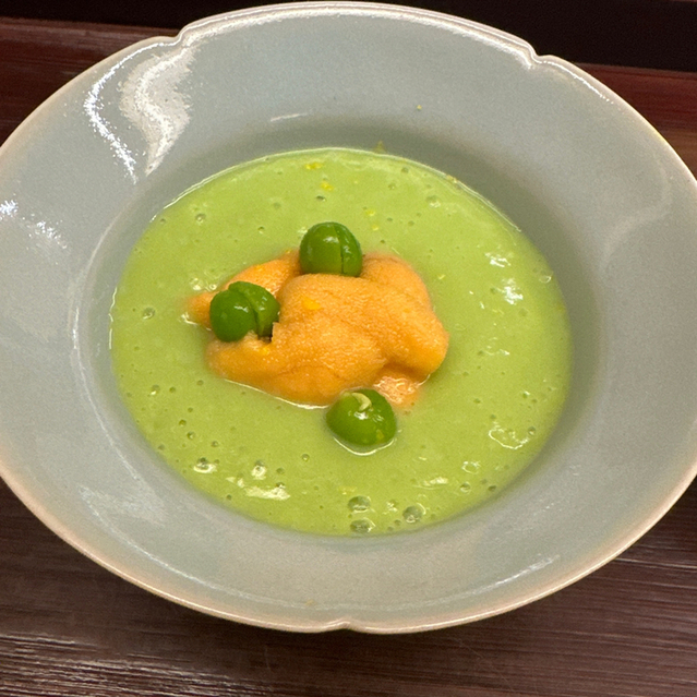 茶碗蒸し 根室雲丹 えんどう豆のスリ流し 生湯葉