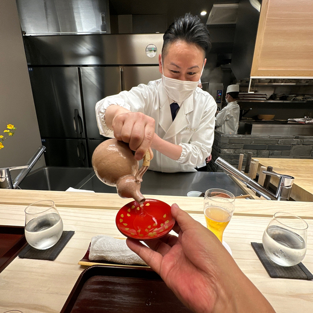 また松葉がに雄雌や白子、クエ、真魚鰹、あん肝、愛媛藤本さんが神経締めした白甘鯛やカンパチなどの魚介類に海老芋、蓮根餅…と秋を彩る食材がこれでもかと目の前に並ぶ‼️