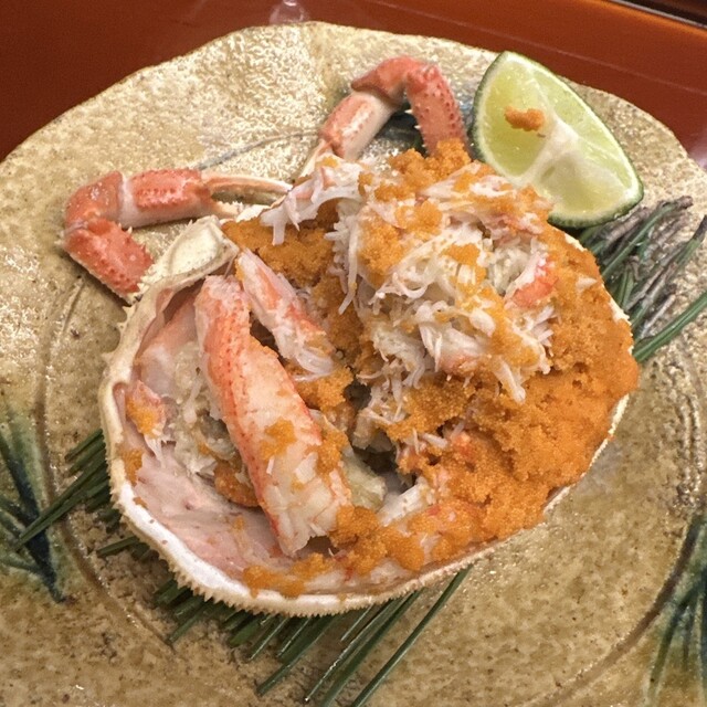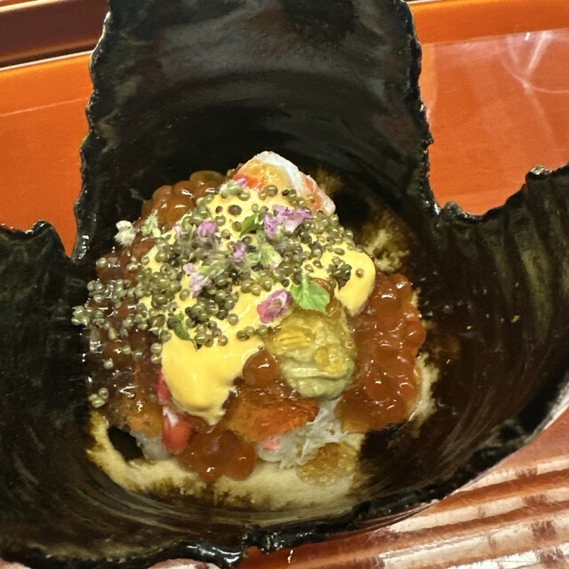 松葉蟹 車海老 いくら 舞茸と黒酢ゼリー 黄身餡