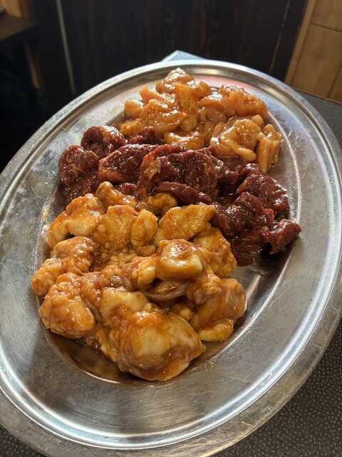 牛ホルモン、牛ハラミ、上ミノでさらにホッピーを流し込む。連れはライス。