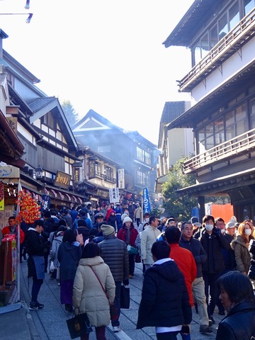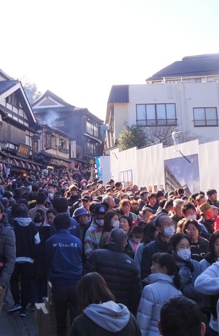 参道へ戻るとモノ凄い人出、既にお寺は入場規制。 押し寄せる人並に逆らい参道を登り