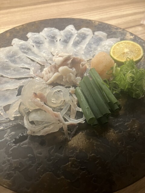 ねっとりとした食感のてっさで、キリッとしたポン酢がまた美味しいんです〜