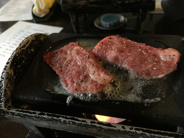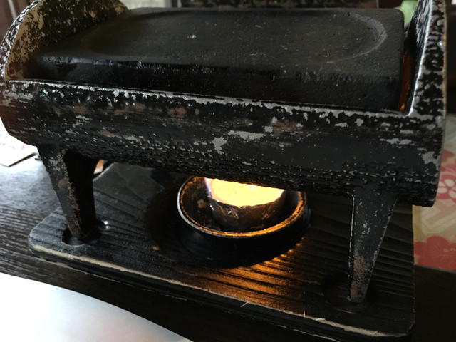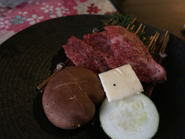 石板にバターを塗って軽く炙って頂けます。椎茸と茄子も美味しかったです。