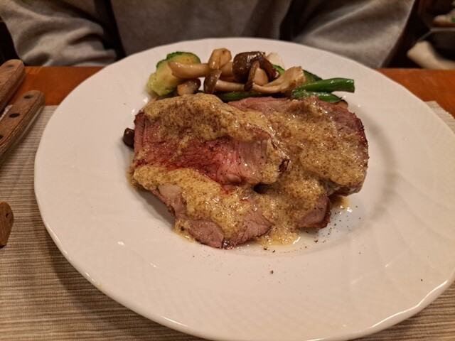 子羊のランプステーキ マスタードソース