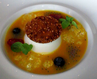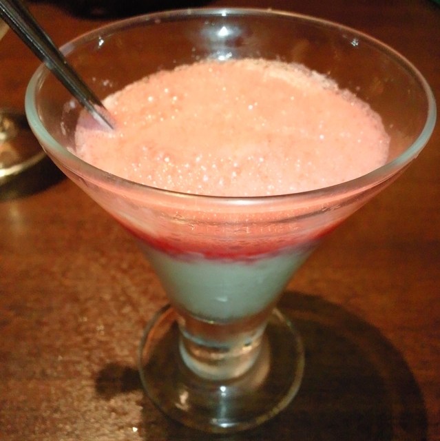 私は見た目が涼しげなフランボワーズとスミレのデザートをいただきました。