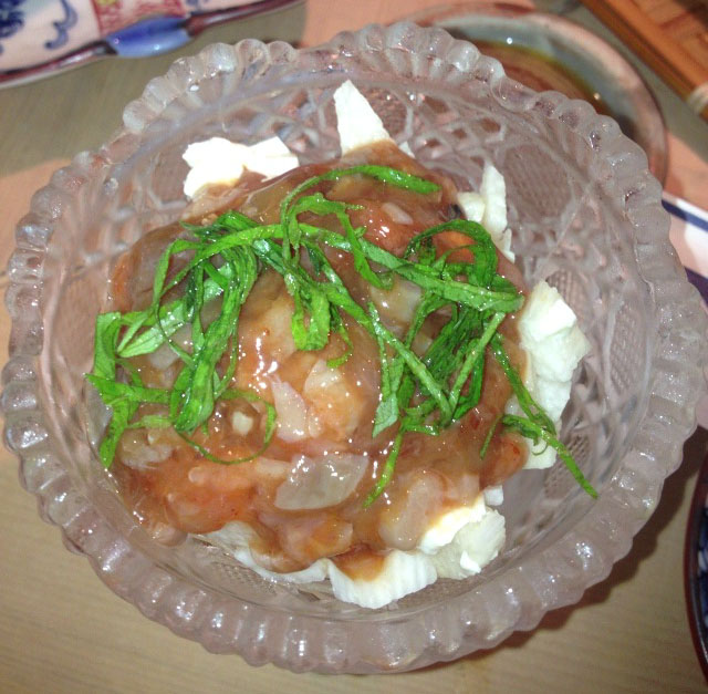 お酒は八海山の焼酎で作った梅酒を水割りでいただきました。