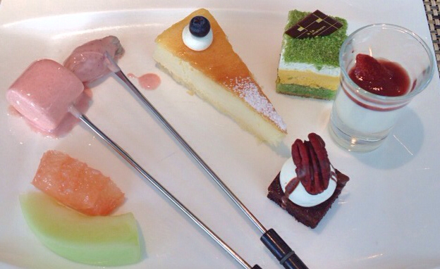 マシュマロでもやって、席へ。ショコラのケーキからいただきます。…美味!一切甘くないというと語弊がありますが、甘さが主張しない、大変洗練されたケーキです。ベイクド・チーズケーキはなんてふわふわなんでしょう!しつこさゼロ、甘さもギリギリまで抑えてあるのではないでしょうか。レアチーズケーキも、コクがあり美味。ストロベリー・フォンデュのチョコも甘さ控えめ。もう一つ食べたいものばかりでしたが満腹に…。全てのお菓子が、ビュッフェのおまけでもなんでもない、大人のために作られた品格あるスイーツでした。