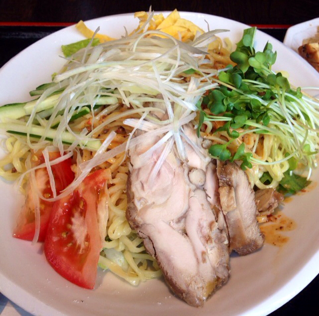 同行の二人がおすすめの冷やし坦々麺(麻婆豆腐乗せ炒飯付、900円)にしました。