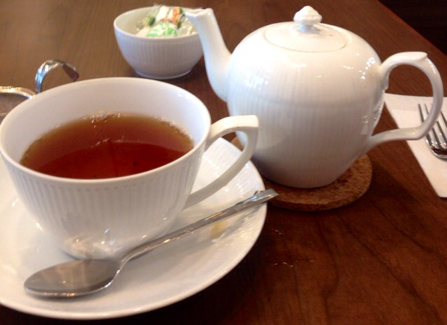 気候的にはアイスティーを頼みたいところですが、時間があるので2杯いただけそうなポットのお茶にしよう。茶葉は最近おいしいと後輩に教わったディンブラ。ケーキはマンゴーのパイ(600円)を注文。お昼を食べてないし。