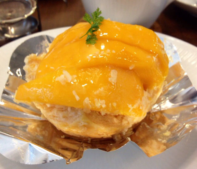 友人が到着し、彼女もお茶とマンゴーパイを注文。カフェのガラスケースになくても、隣のショップにあれば持って来てくださいます。