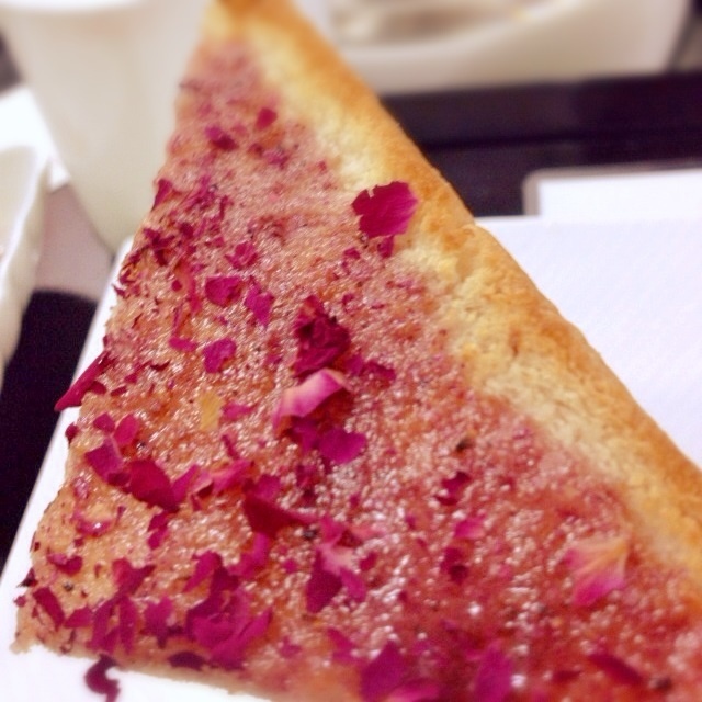 紅茶のお茶受けには、お花のハチミツを塗ったトースト。トーストの上には花びらが!なんてきれいなんでしょう。乙女心(私にもまだ残ってました!)がキュンキュンしてしまいます。これはもう、「姫セット」と名づけたい。