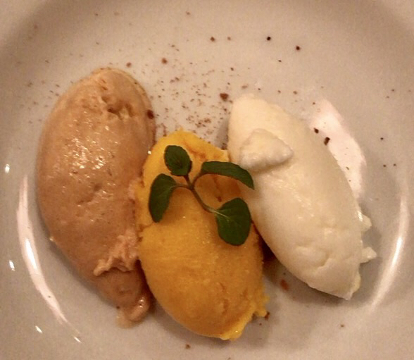 私はオードブルにはジビエ、メインはシカモモ肉、デセールはジェラートの盛り合わせをチョイス。
