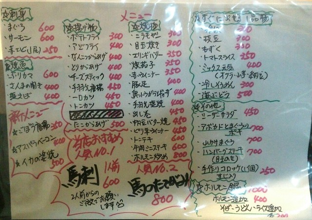 刺身盛り合わせから始まり、馬刺し、出し巻