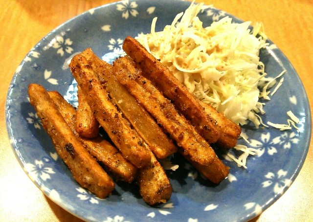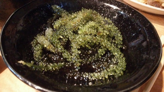 ピリ辛ウインナー、海ぶどう、ごぼう唐揚げ
