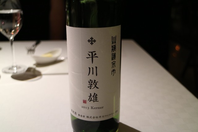 そこからご本人が栽培から醸造までされてるという余市平川ワイナリーのワインを白3本赤1本にシードルまで一皿ずつマリアージュしたコースをいただきました