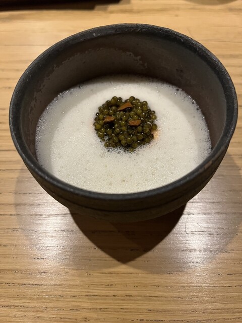 日本人がマイノリティという今どきの京都でありふれた状況ではあるけれど、いまだに慣れないその少々の緊張をあっさりと吹き飛ばす、スタッフの気持ちいい笑顔の接遇と、食材や、調理への愛情みたいなものが、イノベーティブ系にありがちなとんがった味や場をすっかりと和ませた空間に、地の力、火の力を十分に注がれた皿が続く幸せな時間を頂けました。ちなみに完全日本語オンリーで楽しめますので心配無用。