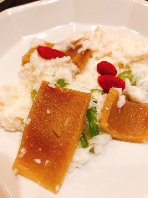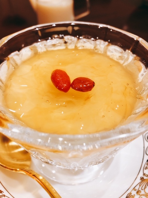 つばめの巣、なまこ、宮崎牛のステーキ。これも、濃厚でうまし。ここにきて、量はサホドない筈なのに、急に満腹感が出始め、不安に。