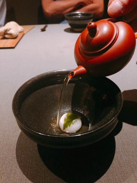 真ん中に緑茶が浮かべてあります。爽やかな香りや~。