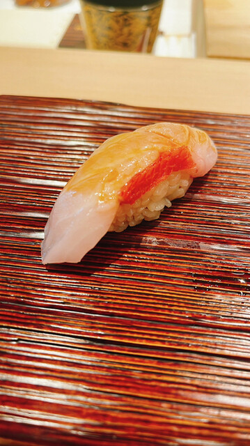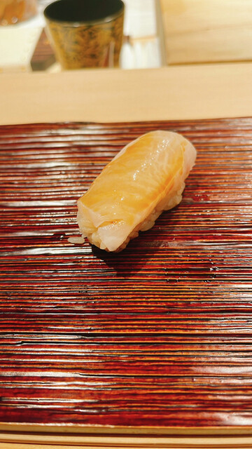 カンパチ、1ヶ月熟成、トリミングが素晴らしく、めちゃ美味い。トロける。旨みしかない。