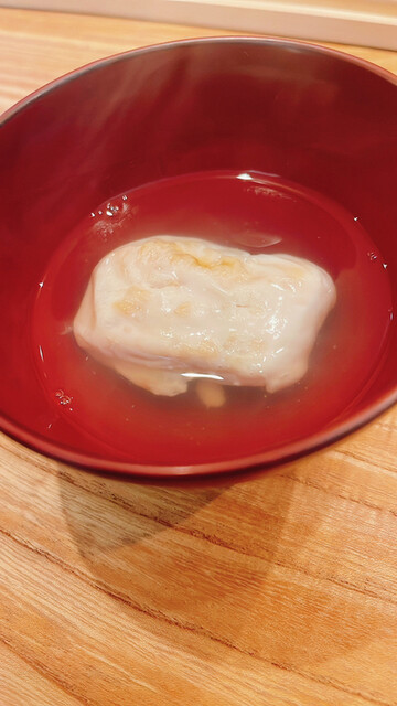 焼いたフグの白子が入ってて、これが凄い。熱々ふっくら、口の中で旨味が破裂。
