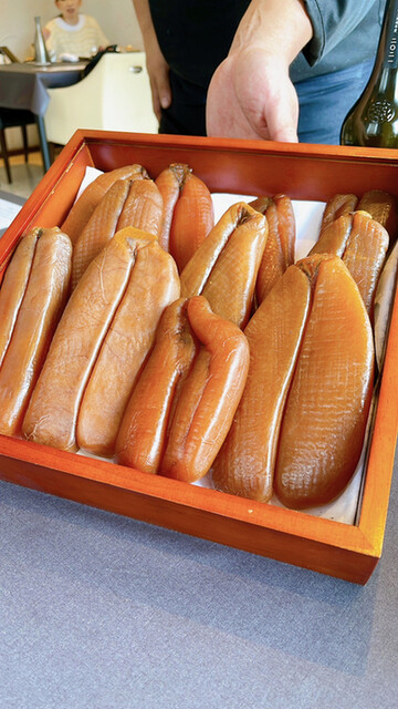 3ヶ月干したブランデー漬け込み自家製カラスミ、のろ蕎麦、絡めて食べる。