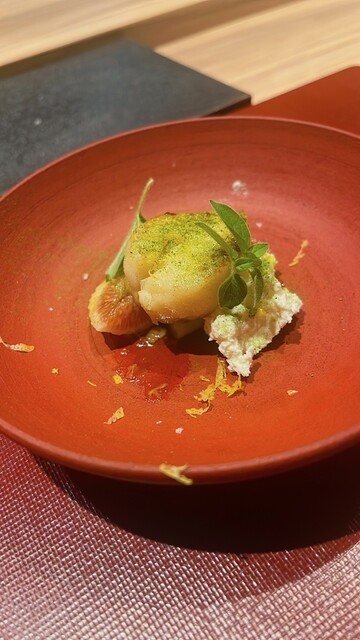 帆立とオレガノ、フィグとリコッタが相性良し。フィグが溶けるなぁ。