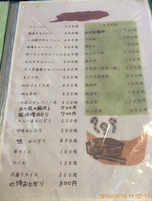 以前入ったときに料理がでか盛りだったので、お昼を食べに入りました。お店に入ると、カウンター席に男性客が2名いました。