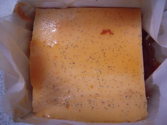 四角いプリンは美味そうな「真っ黄色」 表面には「バニラビーンズ」の粒粒が‼