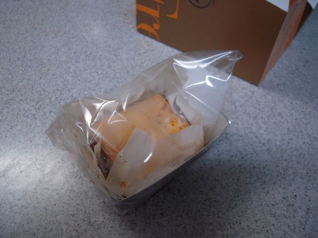 『桃の入ったケーキ』ちっちゃい割に桃が結構入ってる
