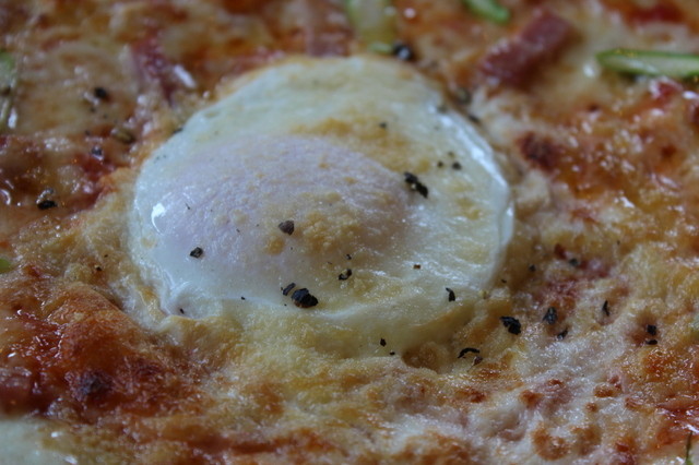 生ハムや焦がしにんにくチップなどがトッピングされています