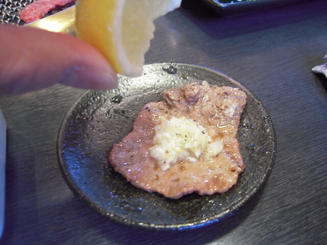 上タン塩焼き・・ねぎ塩だれをたっぷり浸け、レモン果汁を搾る!
