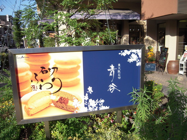 「石切もちどら」自体はアオタニ店舗で通常販売されています(写真)。お家でほんの少し温めて頂くとバターの香りとふんわり感が楽しめます。