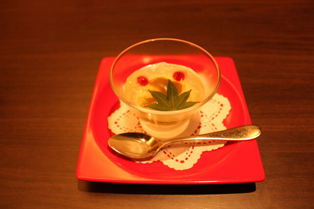 淡路島産青紫蘇のパンナコッタ 梅ジュレとコンポート