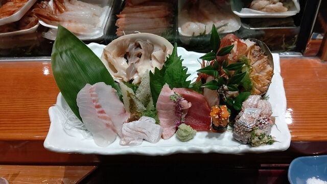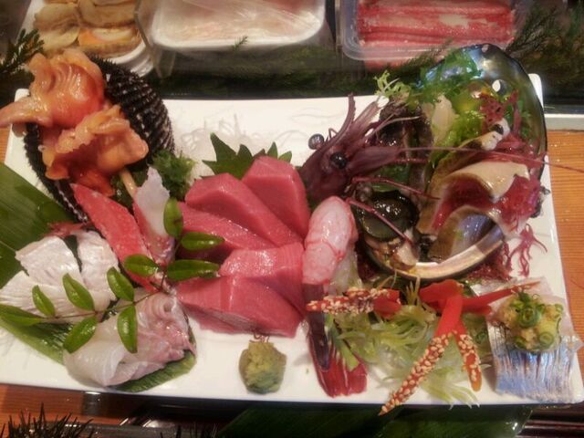 ・造盛: メヌケ・松皮カレイ・ひがしもの メバチ鮪マグロ 大トロ 中トロ+子持昆布+鮑アワビ+ぶどう海老