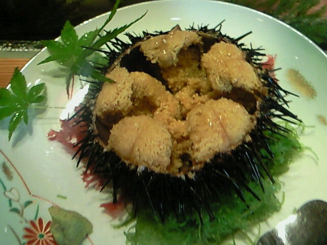 ・ガゼウニ (殻付ムラアキウニ)・・・スプーンで食べる。甘い。6月から楽しめる