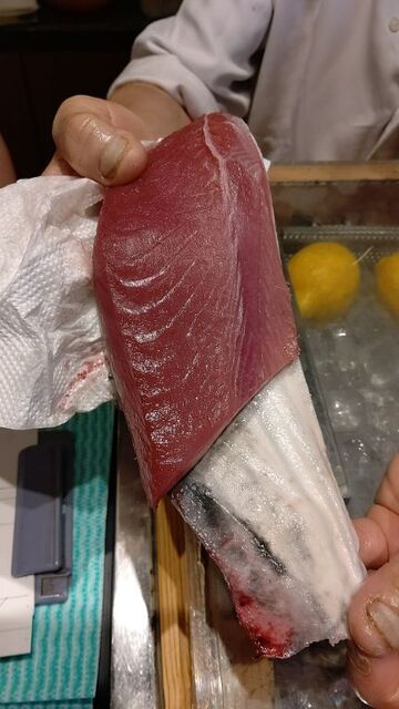 ・メバチ鮪マグロ はがし・・・90㎏級。尾に近いところ。あっさり脂が旨い
